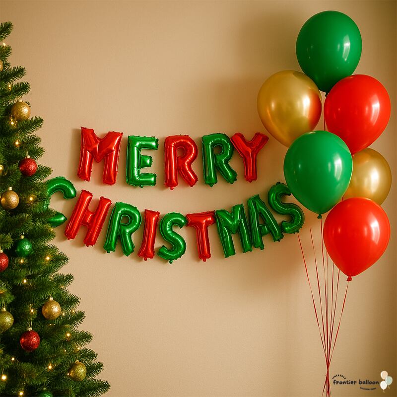 クリスマス 飾り付け バルーン おしゃれ 風船 部屋 メリークリスマス 文字風船 MERRY CHRISTMAS デコレーション 撮影 記念日 ぺたんこ配送 送料無料 100373