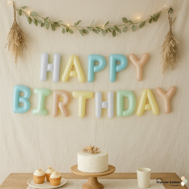 お誕生日アルミバルーン ガーランド 文字 誕生日 お祝い 風船 飾り付け 全20色 HAPPY BIRTHDAY グッズ バナー パーティー デコレーション クリスマス プレゼント ぺたんこ配送 送料無料 100412