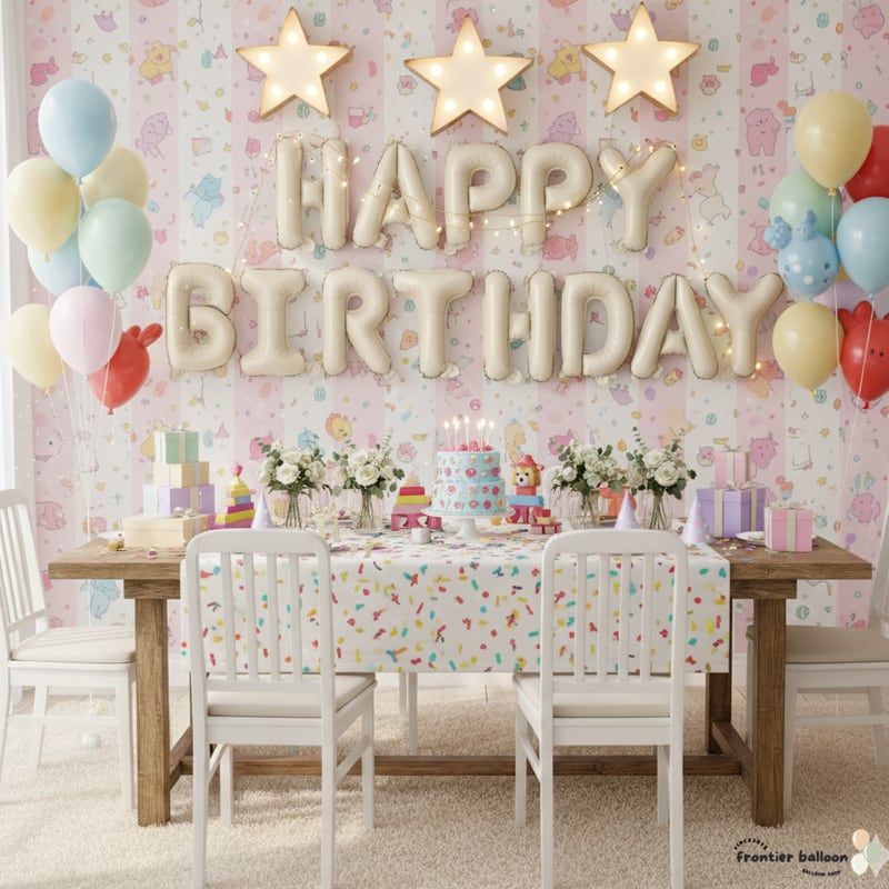バルーンの周りにレイアウトすると、あっという間にお部屋が誕生日会場に早変わり。