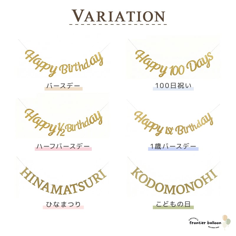 誕生日、100日祝い、ハーフバースデー、1歳バースデー、ひなまつり、こどもの日と大切な記念日に活躍する当店オリジナルガーランドです。