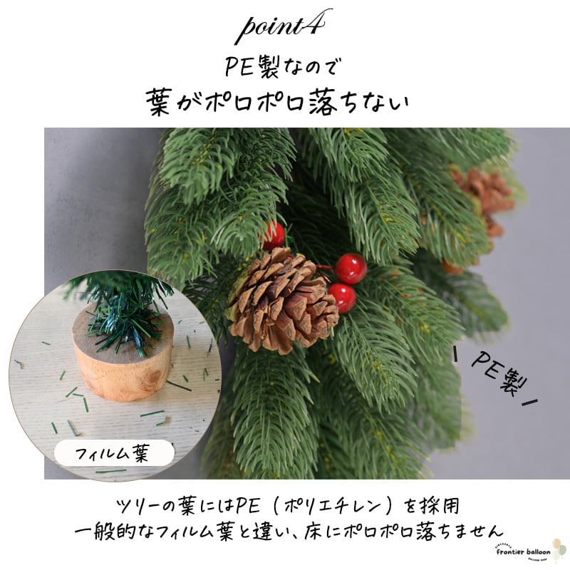ツリーの葉にはPE(ポリエチレン)を採用。